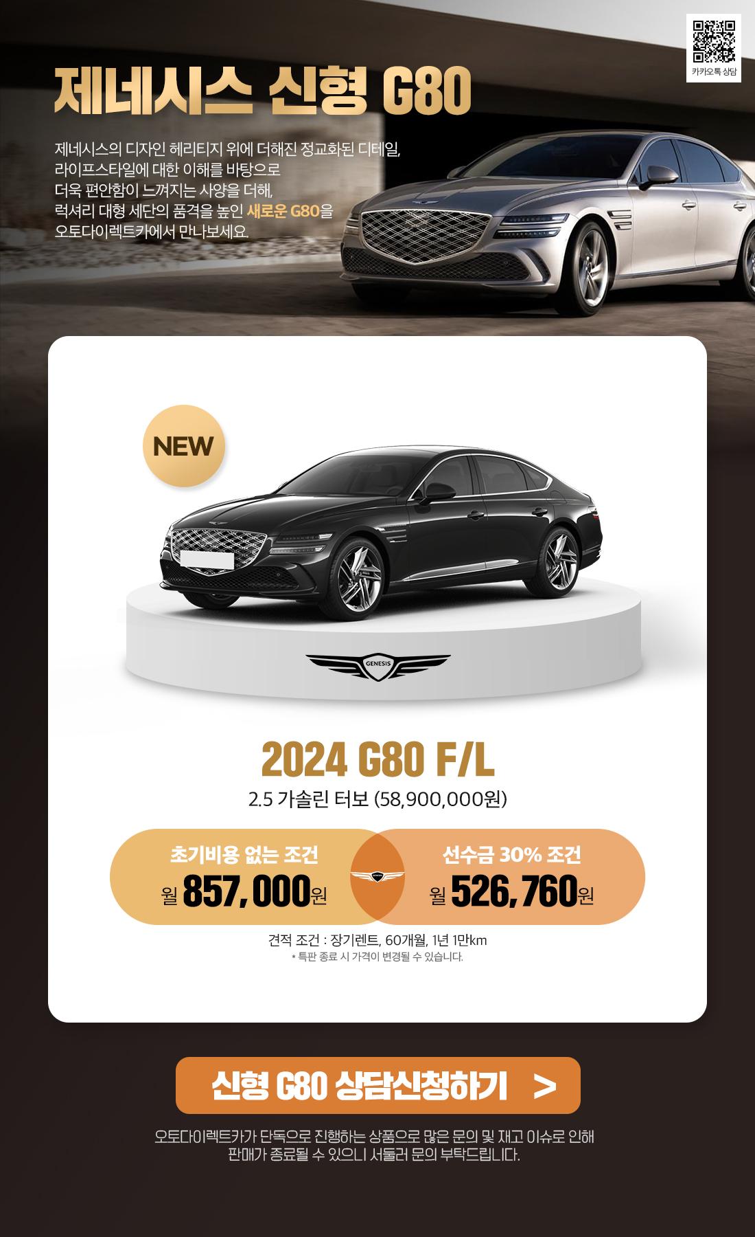핫딜조건 럭셔리 대형 세단의 품격을 높인 새로운 G80을 오토다이렉트카에서 만나보세요.
